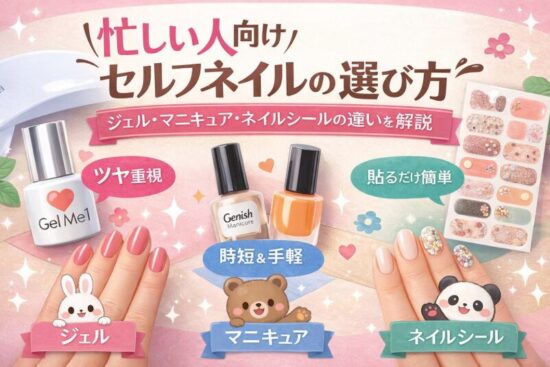 「仕上がりが良さそう」だけで選ぶよりも、自分の生活の中で無理なく続けられるかを基準にすると、満足しやすいセルフネイルを選びやすくなります。