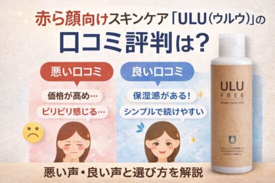 赤ら顔向けスキンケア【ULU(ウルウ)】は、口コミでは「しっとりする」「シンプルで続けやすい」といった評価が多く、