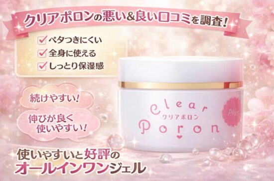 クリアポロンは、首元やデコルテのポツポツ・ザラつきが気になる方にとって、毎日の保湿ケアに取り入れやすいオールインワンジェルといえそうです。